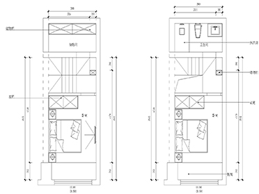 一樓衛(wèi)生間為客衛(wèi),嵌入式水箱節(jié)約空間成本,設計師利用空間特質分配功能區(qū)域。