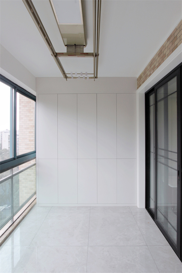 本案為四室戶型,陽臺空間非常大,也是設計師為了讓業主的孩子有足夠的空間練習舞蹈,而留下的巧思。