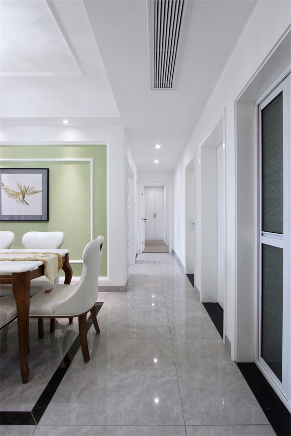 餐廳與走廊相連,對側隱藏著一個小小儲藏室,設計師將區域進行了明確的劃分,并得到了合理的利用。