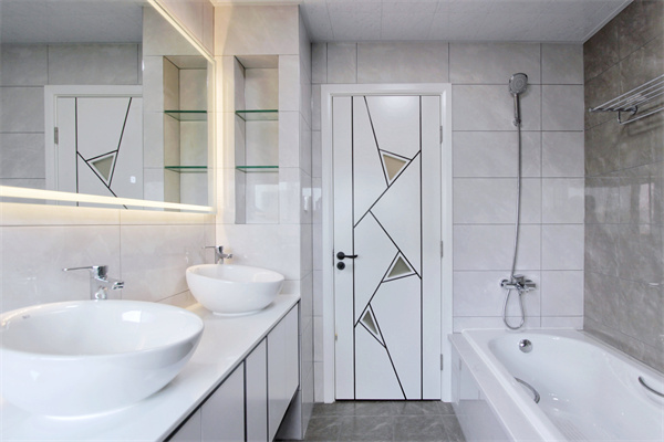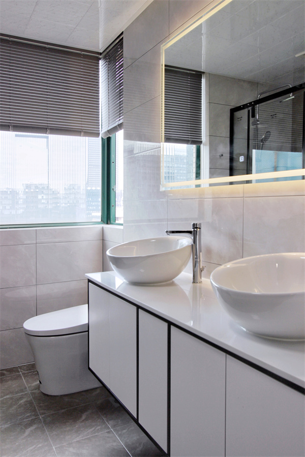 內衛為雙臺盆設計,臺上盆的獨特造型設計,優雅大氣,墻角做壁龕設計,最大化利用空間。