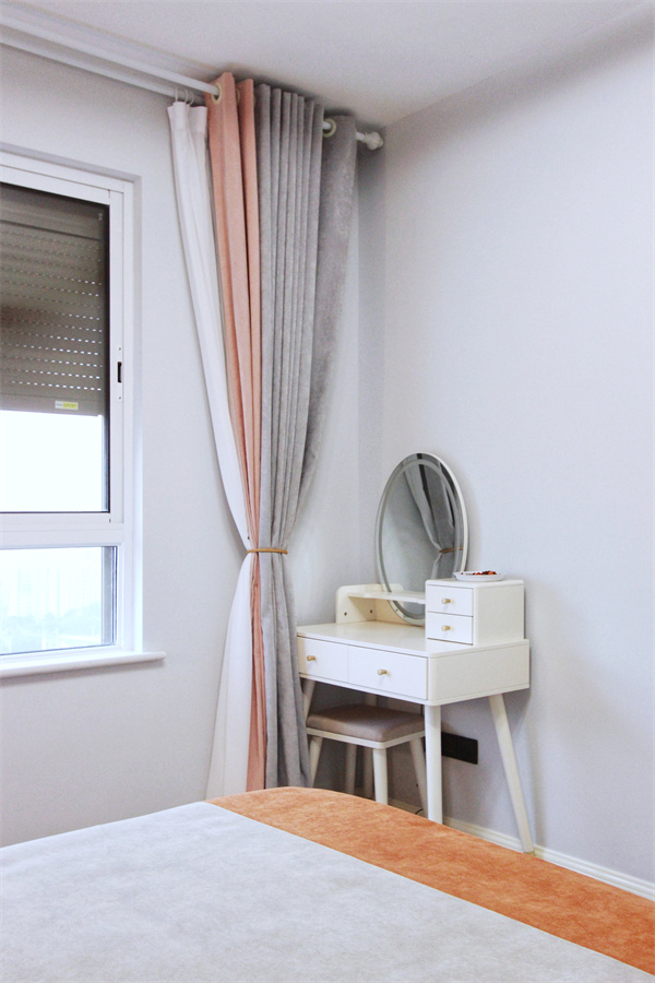 床尾放置梳妝臺,是女主人精心打扮自己的地方,避免了窗口的光源直視,收納整潔舒適。